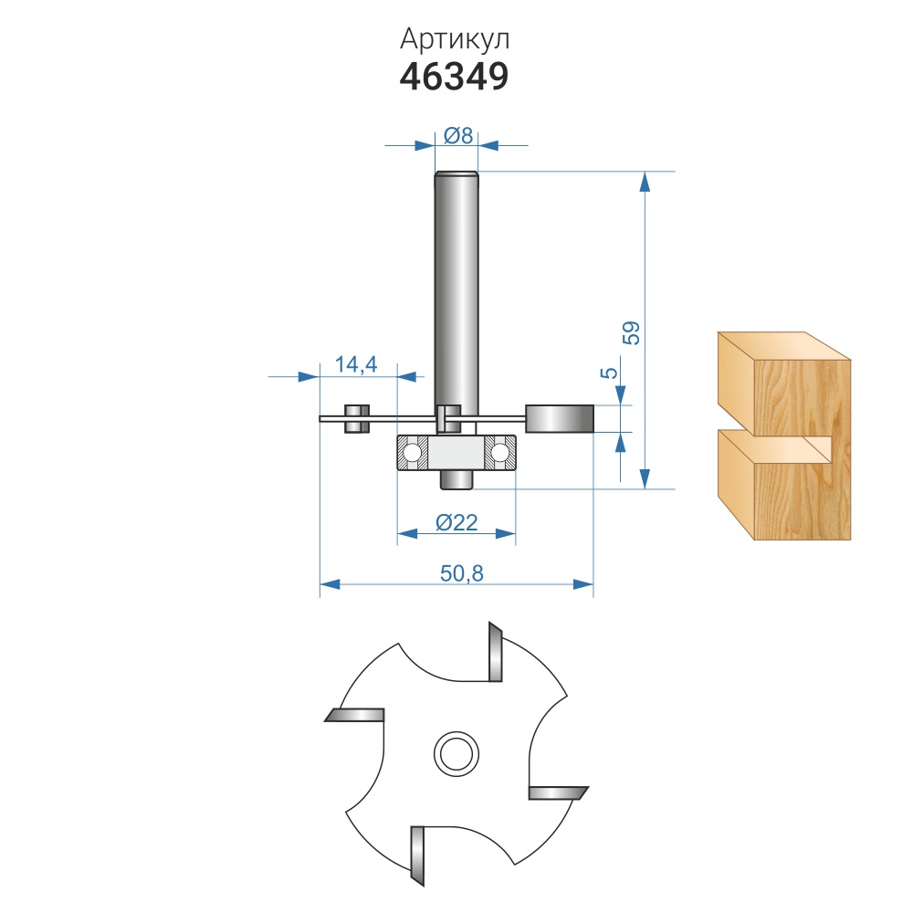 Фреза кромочная фальцевая (Ø 50,8х5 мм; хвостовик 8 мм) по дереву Энкор (46349)