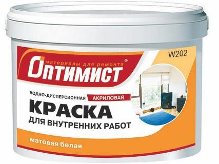 Краска Оптимист подходит для нанесения на оштукатуренные, бетонные, гипсовые, деревянные поверхности.