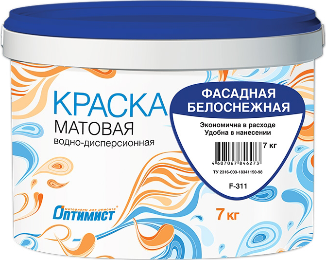 Краска акриловая фасадная Оптимист F311 белая - это отличное решение для тех, кто ищет качественный и надежный материал для обновления фасада своего дома или офисного здания.