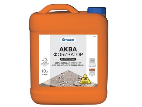 АКВАФОБИЗАТОР препятствует проникновению влаги в структуру материала, загрязнению и обледенению поверхности, появлению высолов.
