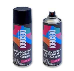 Аэрозольная эмаль по пластику Decorix (черный; матовый; 520 мл) 0117-02 DX предназначена для бытового применения, декоративно-оформительских работ, строительства и ремонта. Применяется для ремонтного окрашивания большинства видов пластмасс, таких как пластмассовые элементы велосипедов, бытовой техники, мебели, инструментов, а также для декорирования помещений и других видов работ.