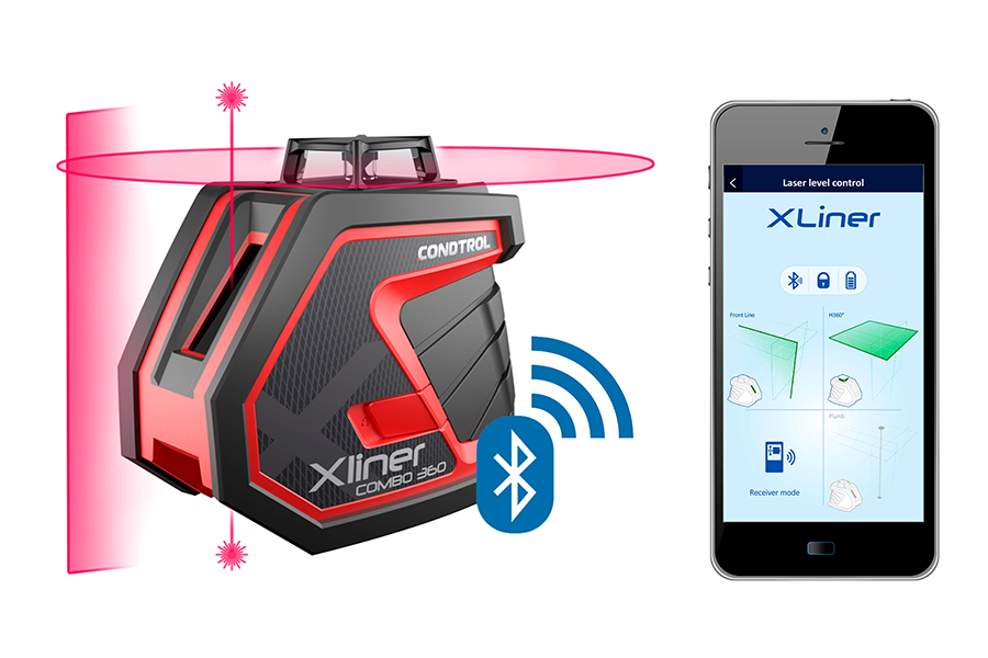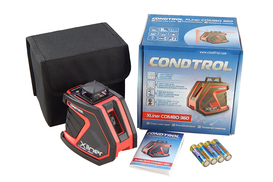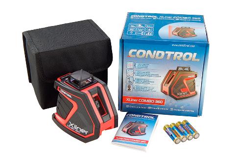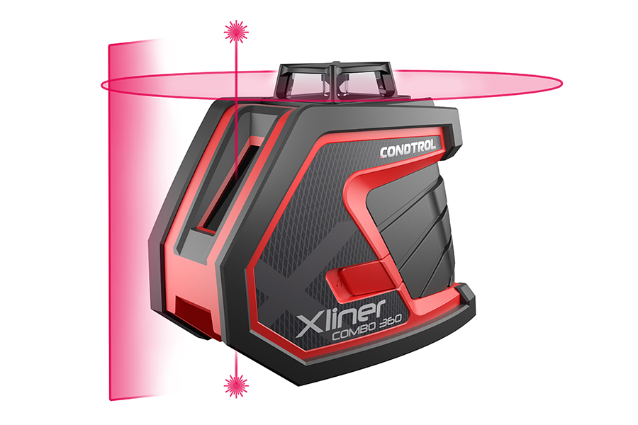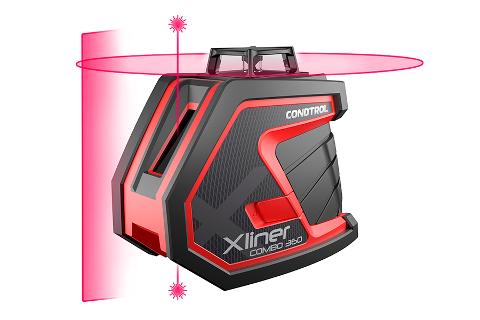Лазерный нивелир Condtrol Xliner Combo 360 1-2-119 проецирует горизонтальную и вертикальную линии, а также отвесные точки (зенит и надир) на расстояние 20 метров.