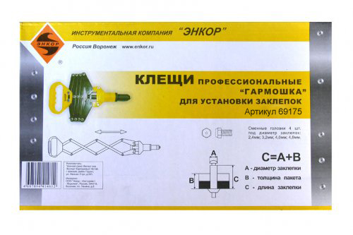 Клещи для установки установки заклёпок Гармошка проф Энкор (69175)