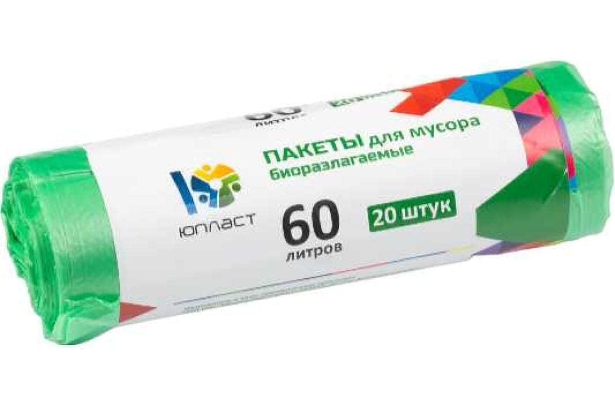 Пакеты для мусора 60л 20шт 8мкм БИО ЮПЛАСТ (ЮХОЗ2042)