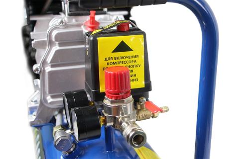 Предусмотрен контроль давления в ресивере и на выходе за счет встроенных манометров.