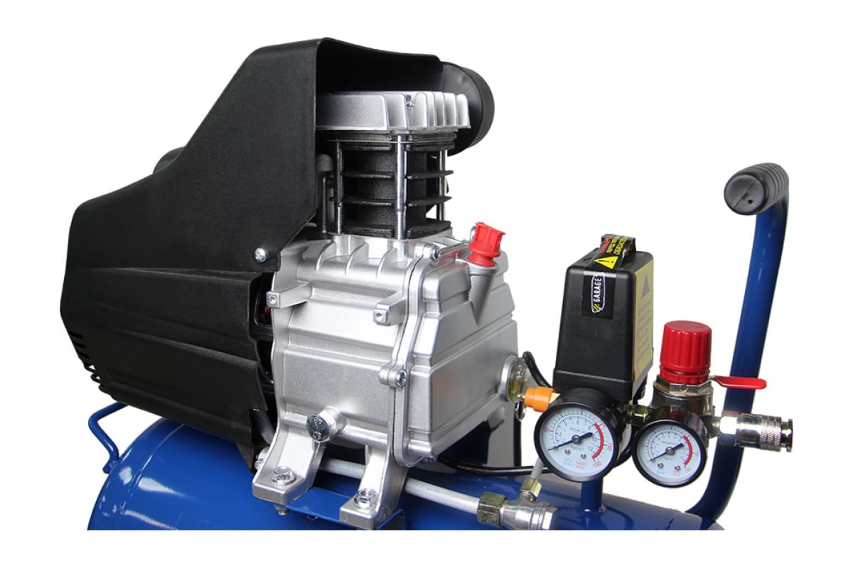 Компрессор Garage PK 24.F250/1.5 сжимает и подает воздух в пневмоинструмент для выполнения таких операций, как, например, бортировка колес, чистка фильтров, подкачка шин.
