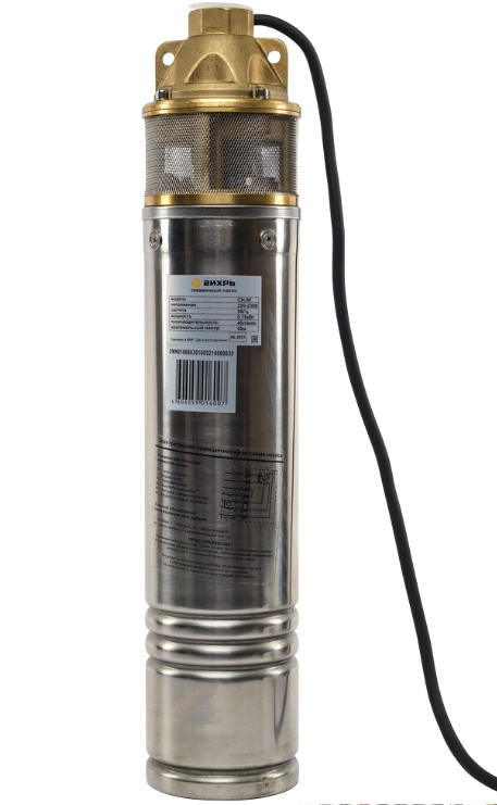 Узкий корпус изготовлен из нержавеющей стали и, благодаря малогабаритности, позволяет выкачивать воду из скважин диаметром от 100 мм.