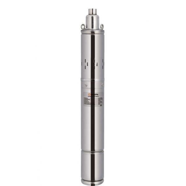 Устройство имеет диаметр 75 мм, может погружаться в воду на глубину до 35 м и работать там длительное время. Электропривод надежно защищен прочным корпусом из нержавейки, насосная часть выполнена из хромированной стали. Длина кабеля составляет 20 м. Винтовая модель с верхним забором воды обеспечивает равномерную подачу жидкости. Мощности двигателя достаточно для обеспечения подъема на высоту до 60 м. Скважинный насос работает с относительно чистыми жидкостями без механических включений, большого количества песка (содержание песка не должно превышать 50 г/м³), температура воды не должна превышать +35 градусов. Устройство оснащено тепловой защитой, которая минимизирует риск поломки из-за перегрузки или отсутствия воды в скважине. В случае срабатывания теплового реле и остановки двигателя сначала следует устранить причину перегрева, дать механизму остыть и после этого включать оборудование снова.