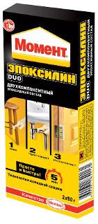 Универсальный эпоксидный клей Момент ЭПОКСИЛИН DUO 2х50 гр В ш/б Б0022996 1029611 - высокопрочный клей в виде пластилина, который застывает за 5 минут.