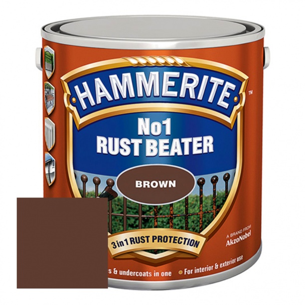 Грунт HAMMERITE для чёрных металлов коричневый 0,25 л