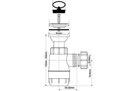 Сифон McAlpine 32 MRW2 используется совместно с раковинами среднего или маленького размера. Сифон обладает высокой пропускной способностью, достигающей 31 л/мин. В комплект поставки входит резиновая пробка, с помощью которой можно заблокировать слив.