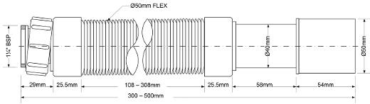 • Труба гофрированная раздвижная (L290-300мм, D50мм); вход 1 1/4"«мама», выход Дн=40/50мм