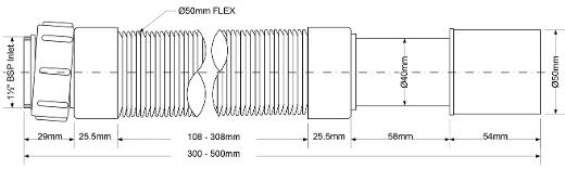 • Труба гофрированная раздвижная (L290-500мм, D50мм); вход 1½"«мама», выход Дн=40/50мм