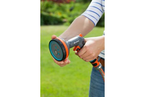 Пистолет-распылитель Comfort Multi Sprayer Gardena снабжен элементами из мягкого пластика, благодаря чему ручку удобно держать в руке.