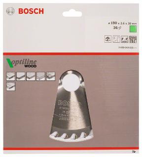 • Внешний диаметр – 190 мм, внутренний – 30 мм, ширина пропила – 2,6 мм, 36 зубьев. Bosch 2.608.640.616