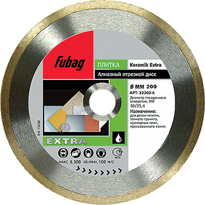 • Алмазный отрезной диск Keramik Extra Fubag 33300-6 является сменным элементом для плиткорезов и бензорезов.