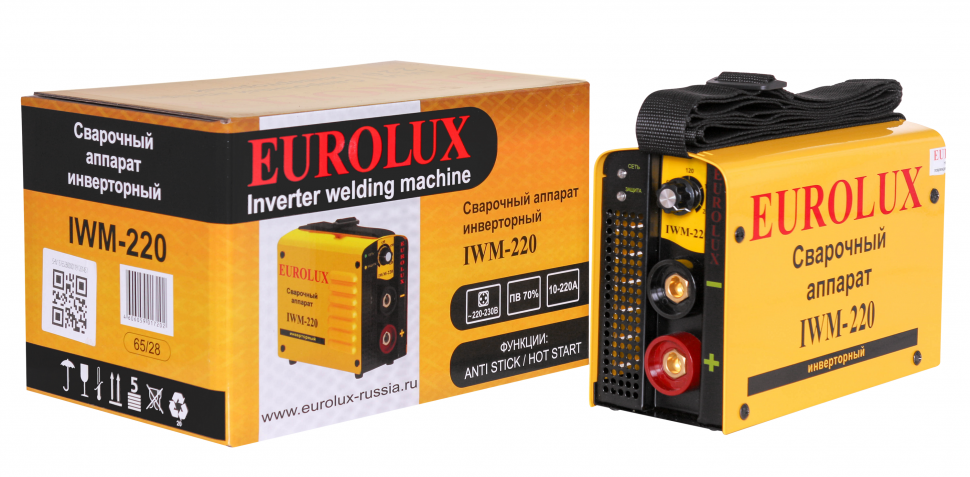 Инверторный сварочный аппарат Eurolux IWM220 предназначен для ручной дуговой сварки металлических заготовок покрытыми электродами.