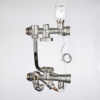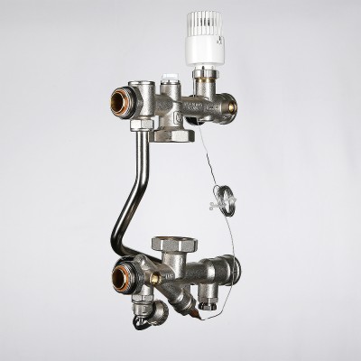 Узел адаптирован для совместного применения с распределительными коллекторами петель теплого пола при межцентровом расстоянии между коллекторами 200 мм.