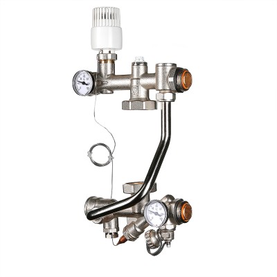 Насосно-смесительный узел VALTEC TECHNOMIX предназначен для создания в системе отопления здания открытого циркуляционного контура с пониженной до настроечного значения температурой теплоносителя. Узел обеспечивает поддержание заданной температуры и расхода во вторичном циркуляционном контуре, а также позволяет регулировать температуру и расход теплоносителя в зависимости от требований пользователя.