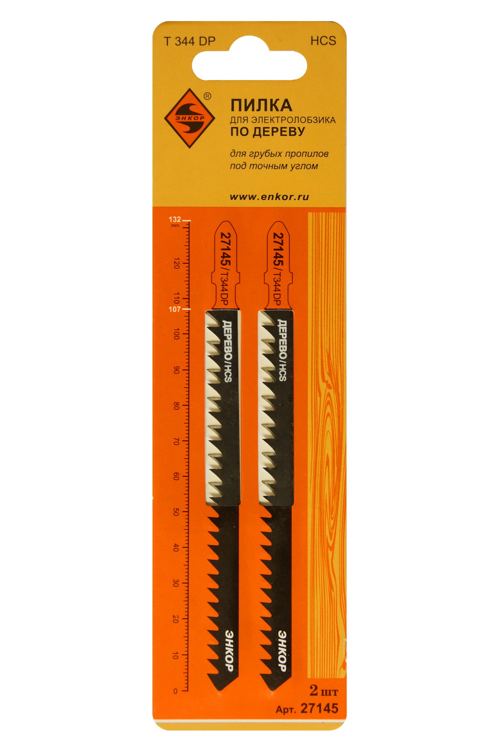 Пилка для электролобзика T344 DP Энкор 27145 применяется для грубого пропила под точным углом в мягкой древесине, фанере, ДСП, столярных плитах, ДВП, дверях, столешницах, толщиной 5-100 мм.