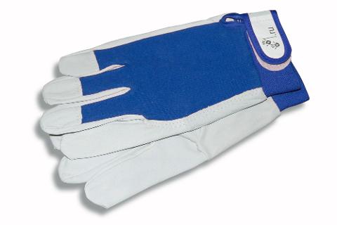 Перчатки хозяйственные кожаные синяя ткань Энкор (53597)