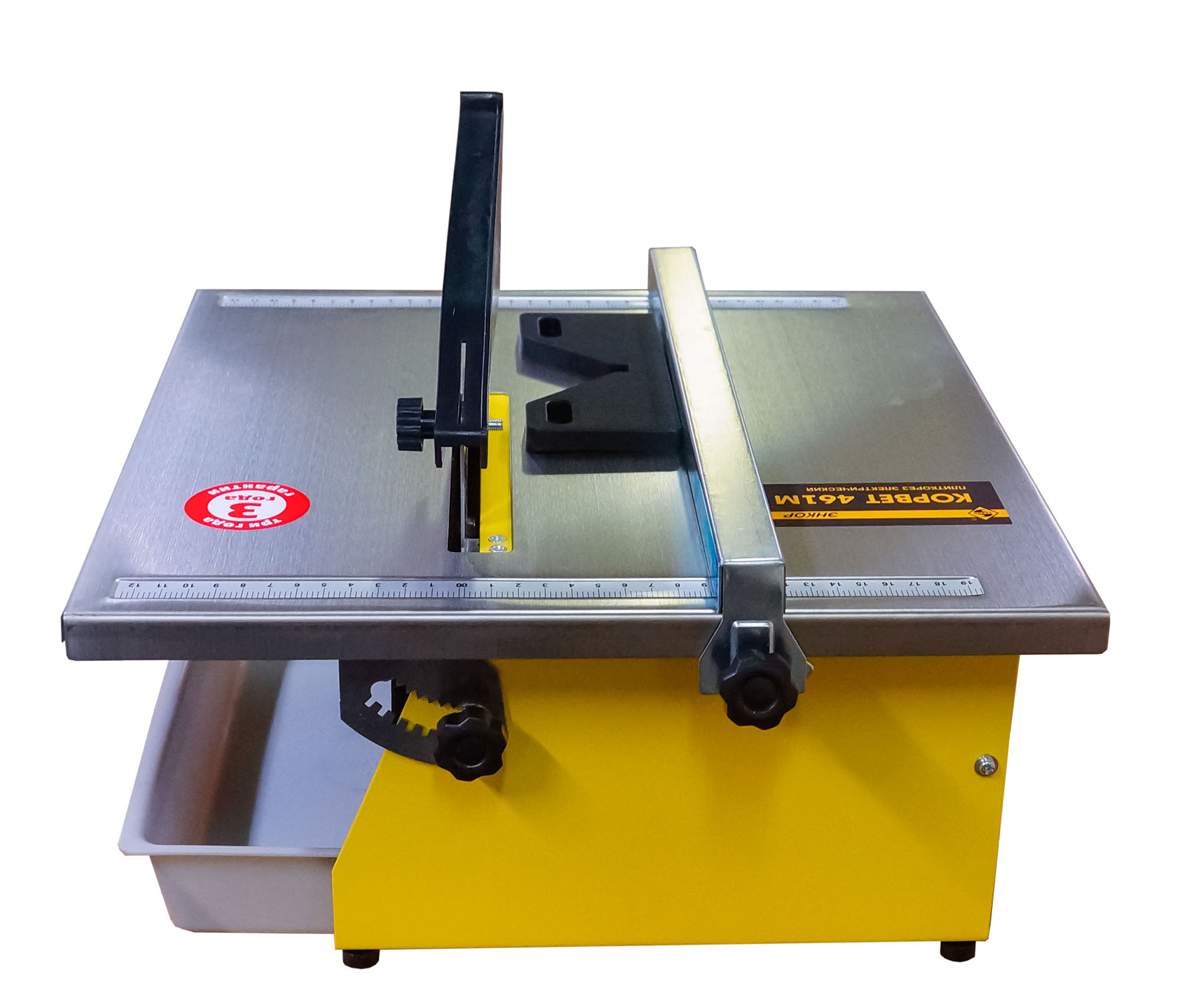 Электрический плиткорез Энкор Корвет 461М 94611 оснащается асинхронным двигателем, при помощи которого станок развивает необходимую мощность для резки плитки.
