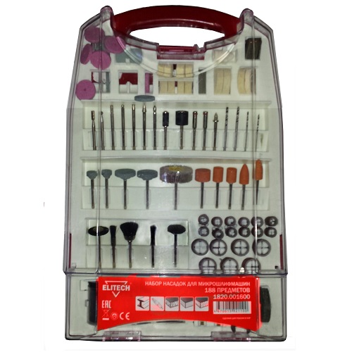 Набор оснастки (188 предметов) для микродрели Elitech (1820.001600)