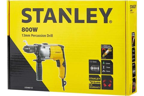 • Ударная дрель Stanley STDH8013C снабжена металлическим быстрозажимным патроном, что обеспечивает простую смену оснастки.