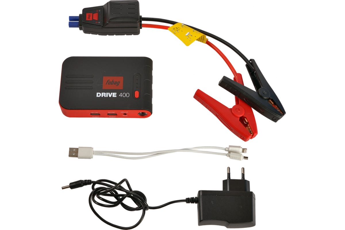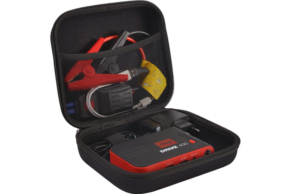 Пусковое устройство FUBAG DRIVE 400 38635 представляет собой суперкомпактное автономное оборудование, которое служит для запуска двигателя объемом до 3 литров.