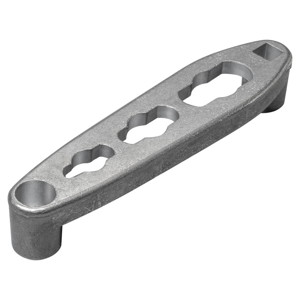 Ацетиленовый ключ газосварщика предназначен для затягивания фиксирующего винта при установке ацетиленового редуктора на баллон, открытия или закрытия ацетиленового вентиля (тип ВБА-1), а также для выкручивания и установки мундштуков сварочных горелок.
