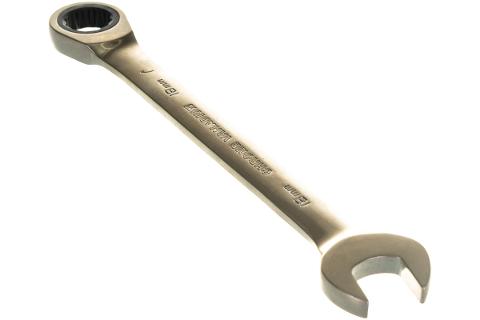 • Комбинированный ключ оснащен рожковой головкой и трещоточным механизмом.