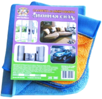• Салфетка изготовлена из двух видов микрофибры. Одна сторона микрофибра махрового плетения, другая сторона гладкого плетения "Стекло"