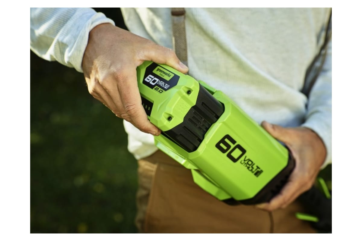 Аккумуляторный триммер GreenWorks GD60LTK2 2103207UA используется при кошении мягкой и жесткой травы.