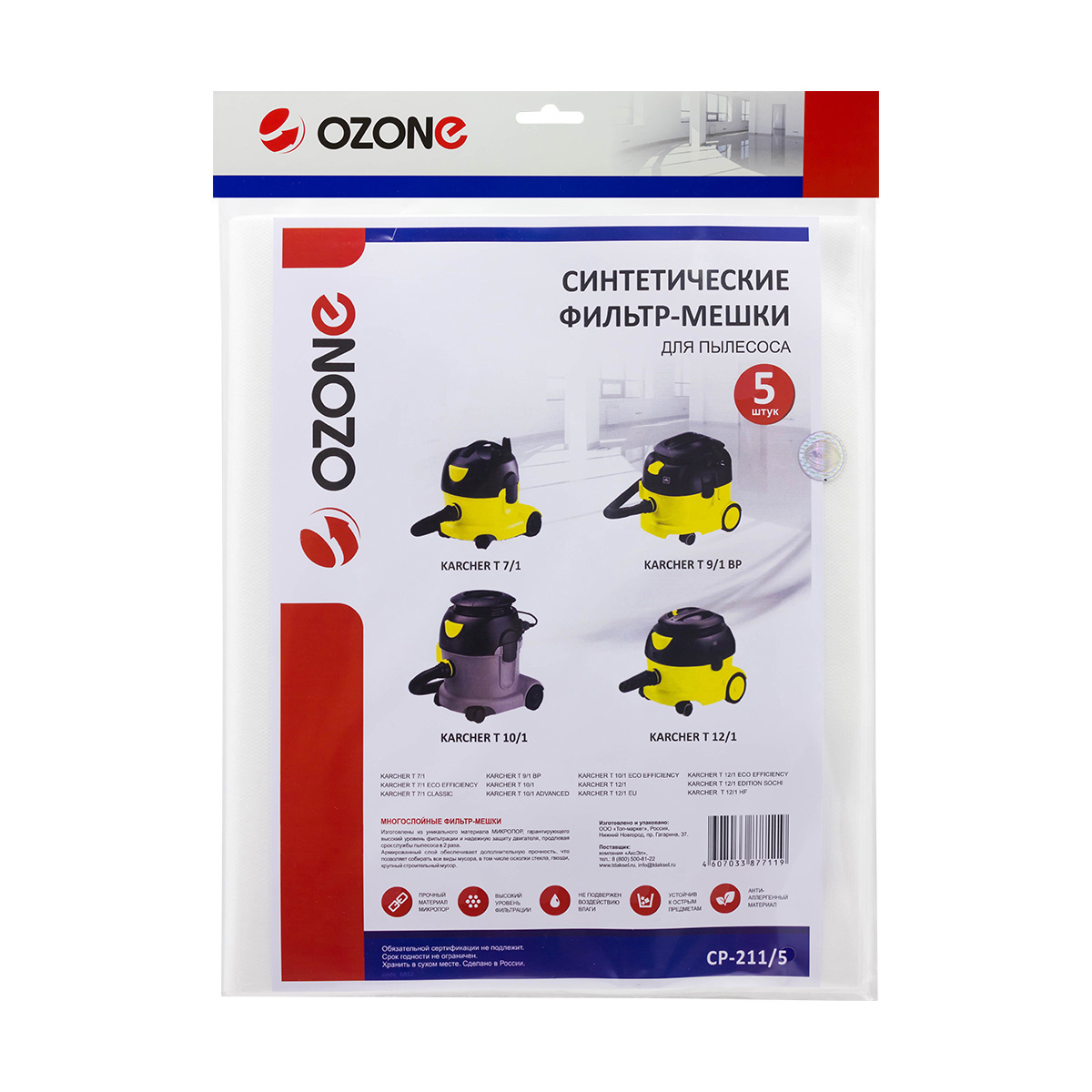 • Мешок-пылесборник clean pro OZONE CP-211/5 подходит для следующих пылесосов: KARCHER T 12 ; KARCHER T 15.