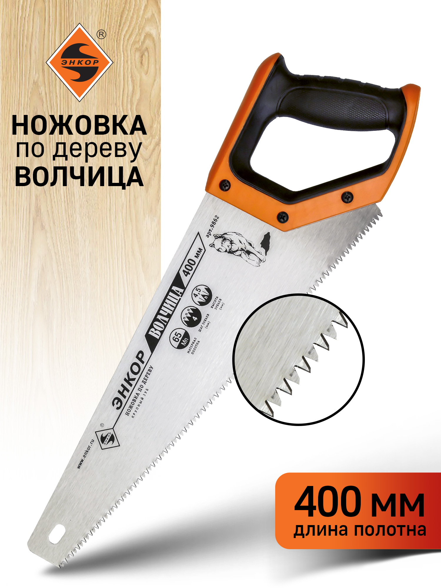 • Ножовка Энкор Волчица 9862 применяется для пиления древесины.