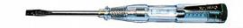 Прозрачная рукоятка выполнена из пластика, внутрь нее помещен индикатор, позволяющий определить наличие или отсутствие напряжения в ремонтируемых предметах.