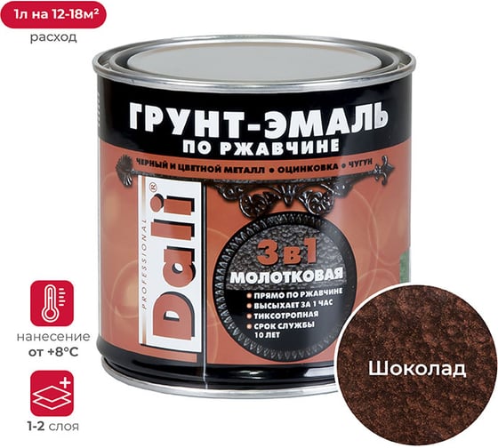 Грунт-эмаль по ржавчине Dali 3 в 1 молотковая шоколадная 0.75 л