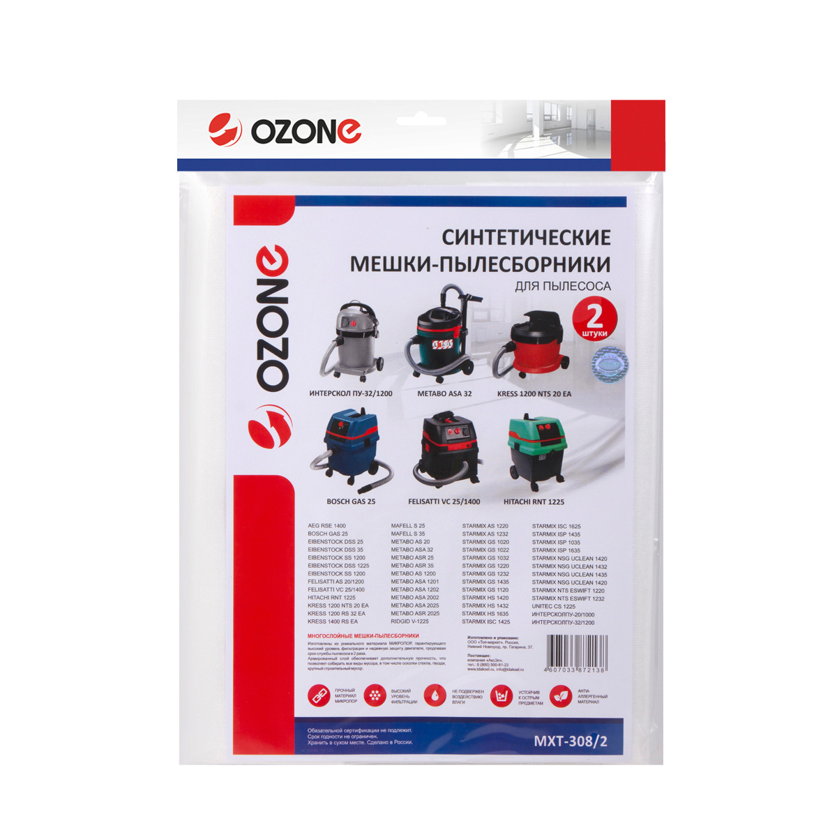 Мешок-пылесборник turbo OZONE XT-308 используется в качестве расходного материла в следующих пылесосах: AEG RSE 1400; BOSCH GAS 25; Eibenstock DSS 1225; DSS 1200; HITACHI RNT 1225; KRESS 1400; 140 RS/EA; METABO AS 1200; METABO AS 1201; METABO ASA 1201; METABO ASA 1202; METABO ASA 2002; METABO ASR 2025; STARMIX FB20; STARMIX FB32-35;STARMIX 1020; 1022; 1030; 1032; STARMIX 1120; 1220; 1225; 1232; 1420; 1425; 1432; 1435; 1635; ИНТЕРСКОЛ ПУ-20/100; ИНТЕРСКОЛ ПУ-32/100. Это одноразовый мешок, который изготовлен из синтетического четырехслойного материала"micro-por". Добавление мельтблауна обеспечивает наличие фильтрующих слоев с более тонкими волокнами. Данный мешок обладает большей механической прочность, по сравнению с бумажными пылесборниками. Он не теряет фильтрующих качеств даже при работе с влажным мусором. При использовании данного пылесборника двигатель пылесоса работает без перегрузок.