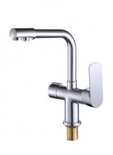 Смеситель для кухни KONNER KITCHEN с переключателем на питьевую воду KIT1201 выполнен из латуни и имеет глянцевую поверхность.