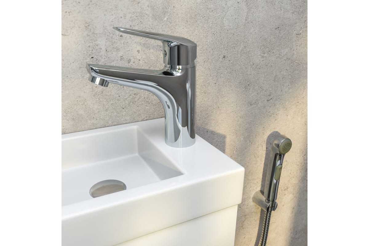 • Смеситель для умывальника IDDIS Torr ID TORSB00i01 оснащен однорукояточной системой управления для смешивания потоков горячей и холодной воды.