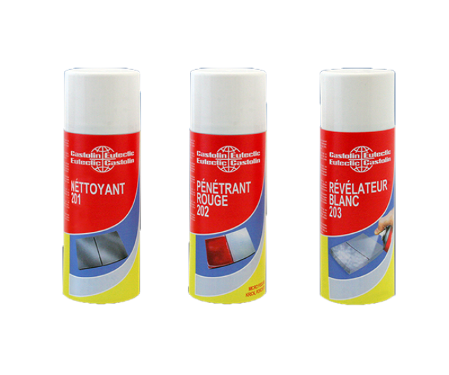 • Набор состоит из: Очиститель Castolin 201; Пенетрант Castolin 202; Проявитель Castolin 203.
