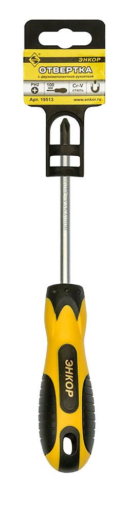 • Отвертка Энкор PH2х100мм 19513 применяется для монтажных и демонтажных работ.