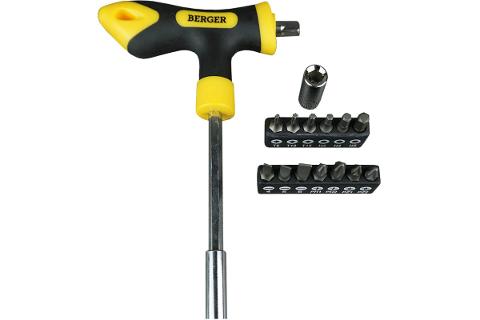 Набор: Т-образная отвертка с битами, 15шт Berger BG1070 - ремонтно-монтажный комплект из отвертки, насадок и адаптера, который станет надежным помощником как для мастера-профессионала, так и для любителя.