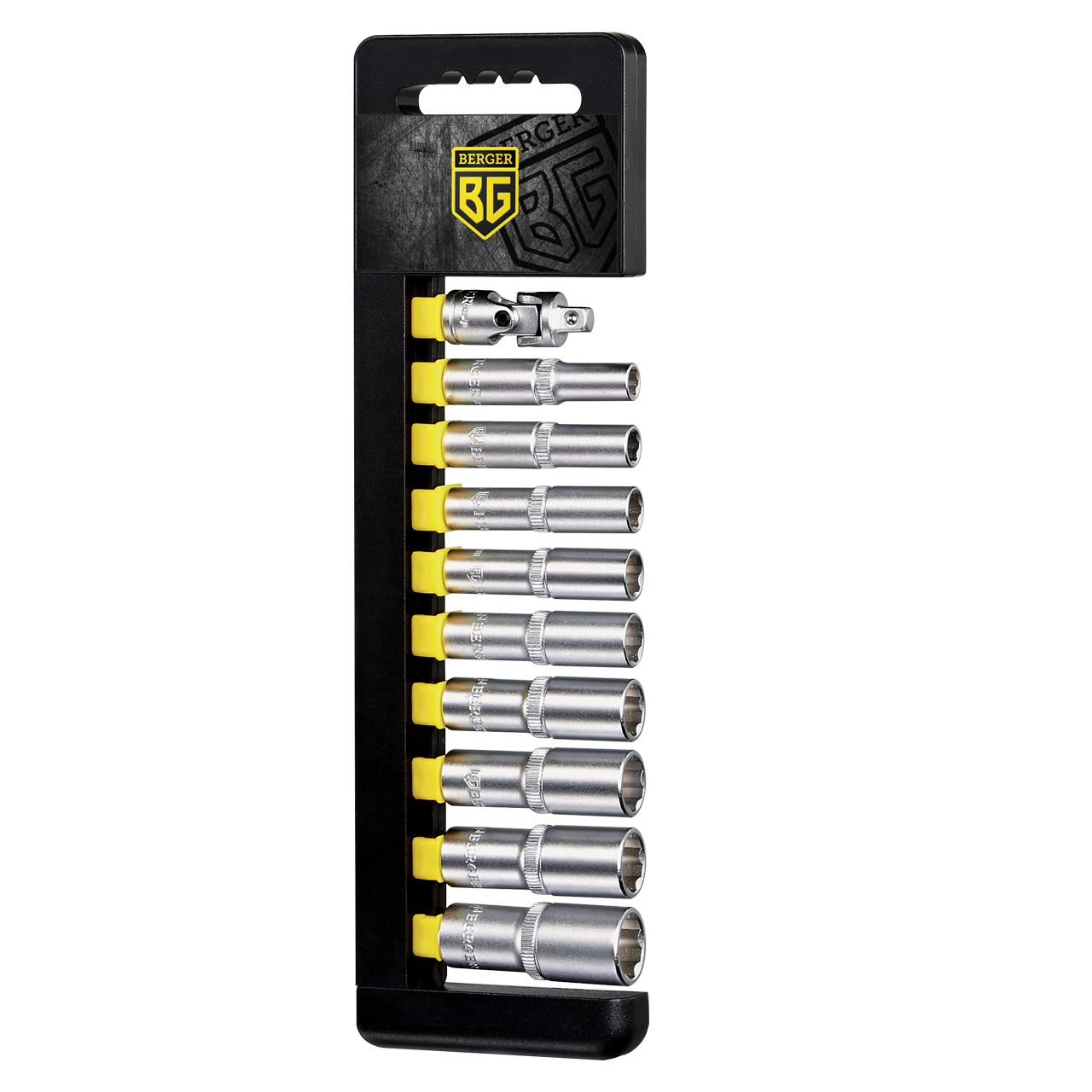 Набор удлиненных торцевых головок 1/4 SuperLock 10шт Berger BG2033 - комплект насадок увеличенной длины для простоты выполнения процесса крепежных работ в труднодоступных местах.