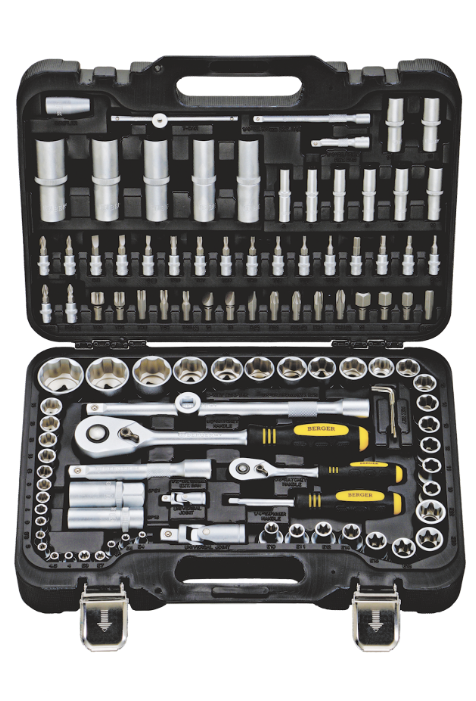 Универсальный набор инструментов Berger BG BG108-1214 состоит из 108 предметов, которые выполнены из качественной хромованадиевой стали и защищены от образования коррозии.
