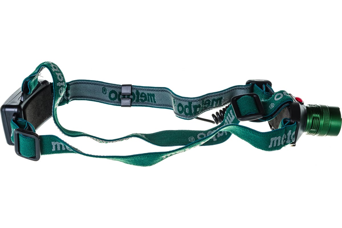 • Налобный светодиодный фонарик Metabo 657003000 крепится на голову, благодаря регулируемому ремешку.