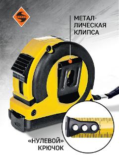 • Корпус рулетки прорезинен, что не позволяет инструменту проскальзывать в руке.
