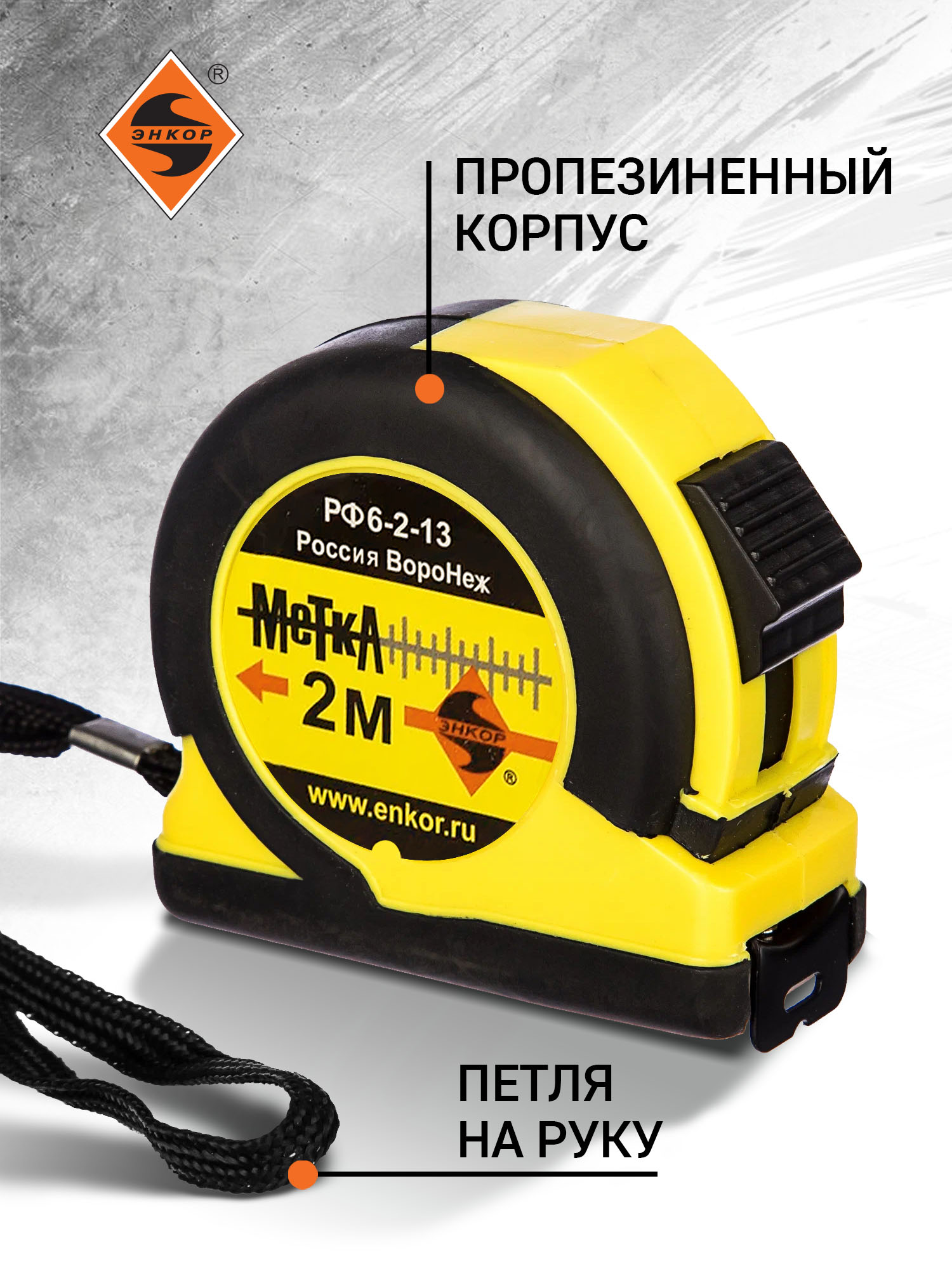 • Рулетка Энкор Метка, 2м 10104 - эргономичное приспособление для обмера небольших линейных расстояний до 2-х метров.