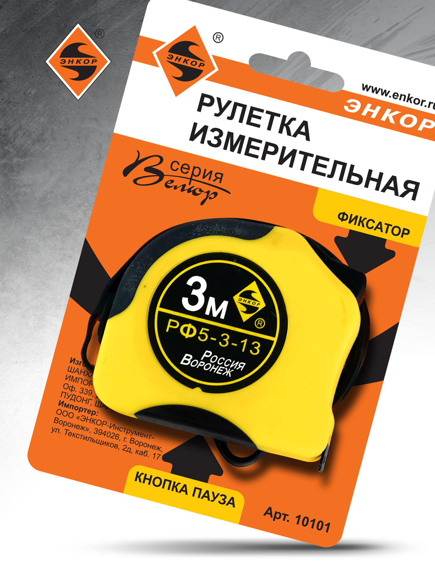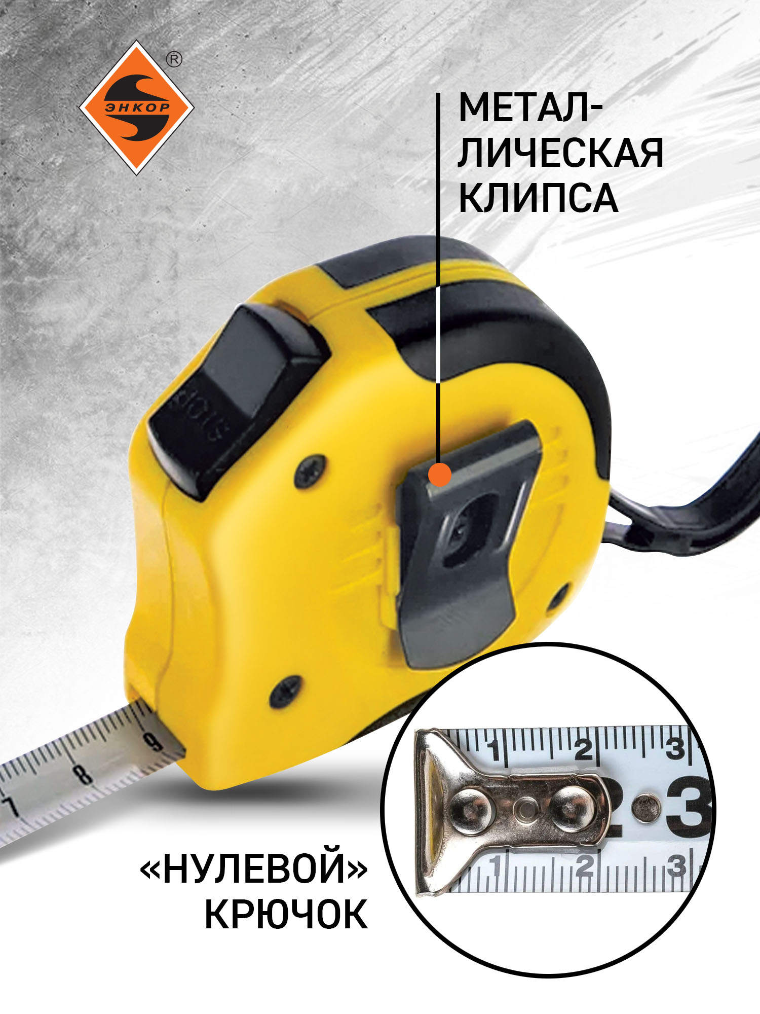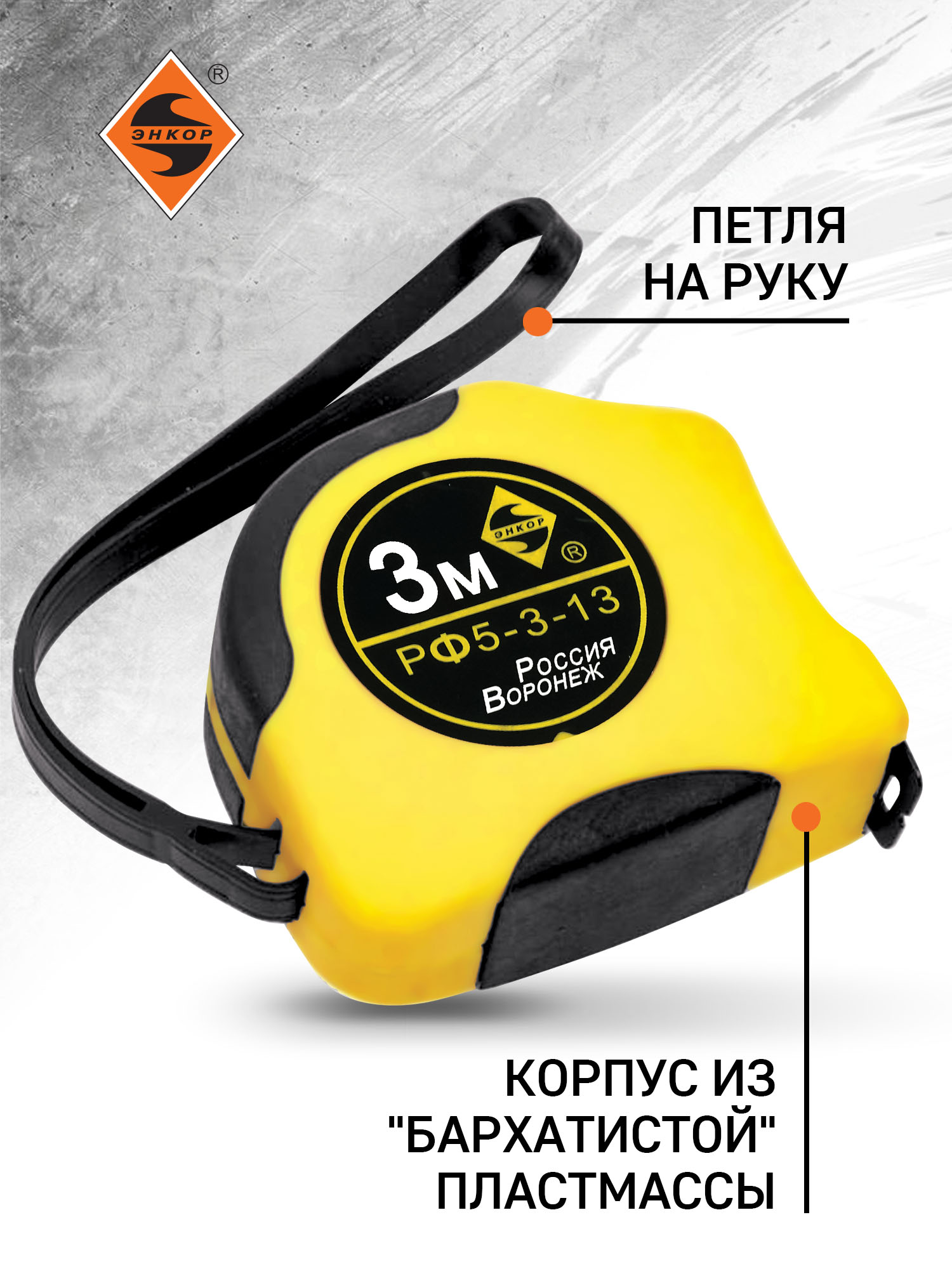 Рулетка Энкор Велюр 3м 10101 необходимый инструмент для различных видов измерений. Корпус из мягкой, "бархатистой" пластмассы имеет прорезиненные вставки для более комфортного удержания инструмента в руке.