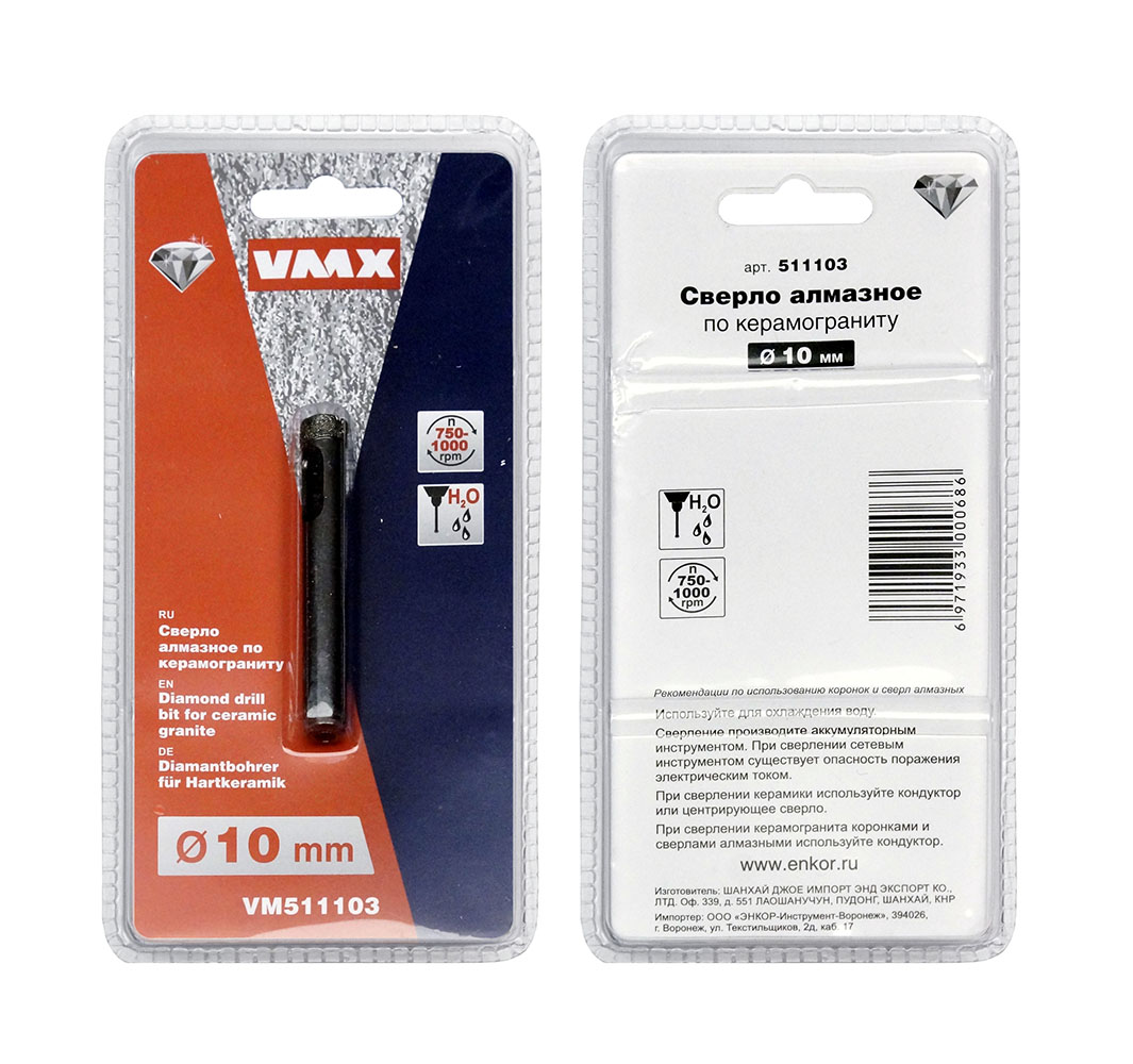 Сверло для керамогранита Ø10мм алмазное мокрый рез VMX (511103)